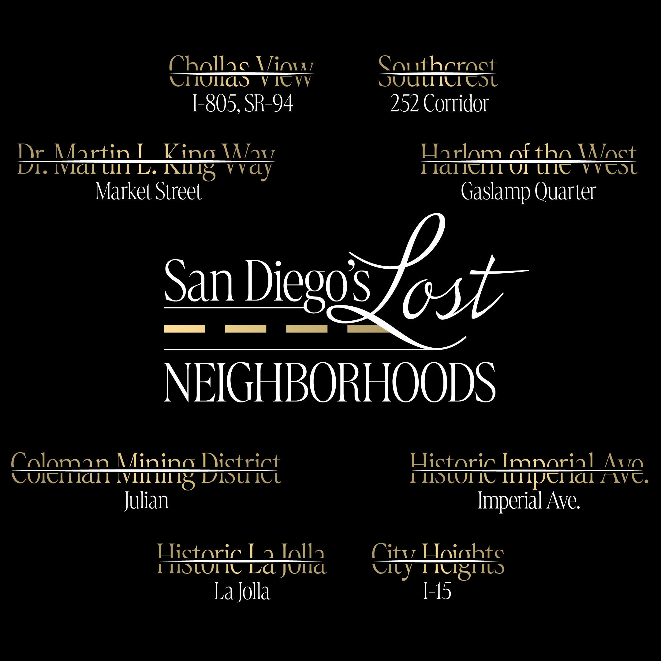 I was hired by SDAAMFA, in partnership with the San Diego History Center (SDHC), to design an exhibit on San Diego’s Lost Neighborhoods. “This immersive exhibition sheds light on historic communities displaced or erased by discriminatory practices such as redlining and freeway construction.” Students from the University of California San Diego did the first phase of research for the exhibit. I was tasked with researching additional documents to support the exhibit (in partnership with staff at the SDHC), creating an overarching narrative (in partnership with staff at the SDAAMFA), and designing all aspects of the exhibit. I handed over final artwork to the SDHC and the SDAAMFA who wrote the image references and detail copy, coordinated printing all of the photos and banners, and hung the exhibit. If you would like a behind the scenes look at the details I put into exhibit design, click here to view the google document I created for the museums to implement the exhibit.